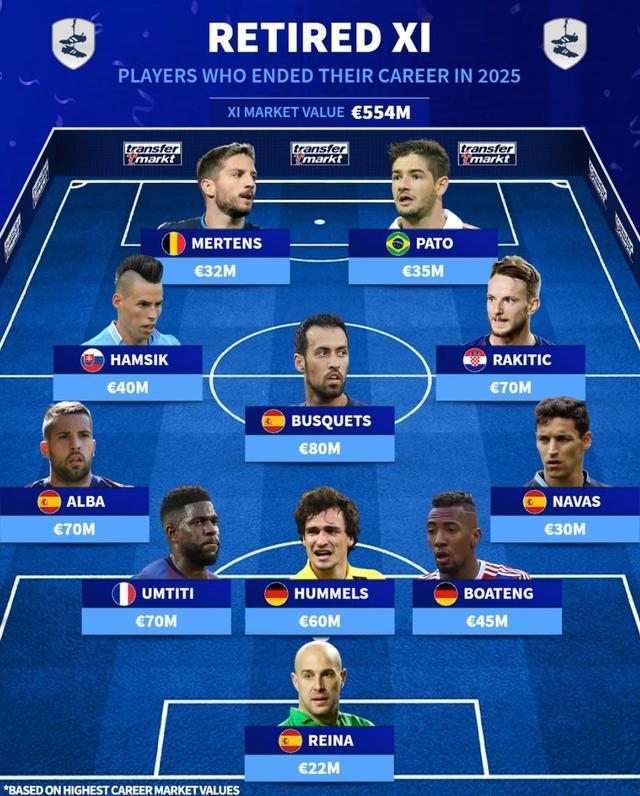 德转列2025年退役球员最佳11人:中超旧将帕托、哈姆西克上榜